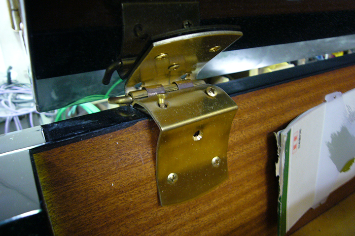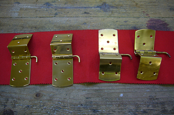真鍮パーツ(ペダル、各部蝶番等)を磨き、防錆び処理をして修理は完了です。