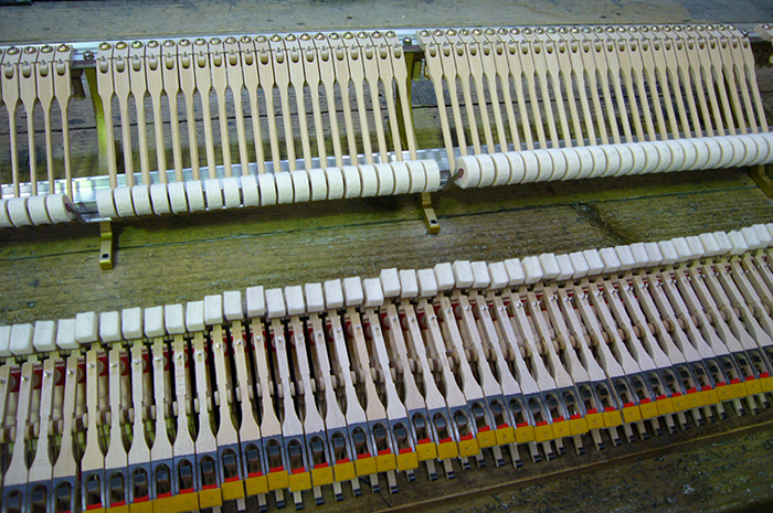 アクション、大屋根、前屋根等、各部パーツを取り付けピアノとしての形になります。