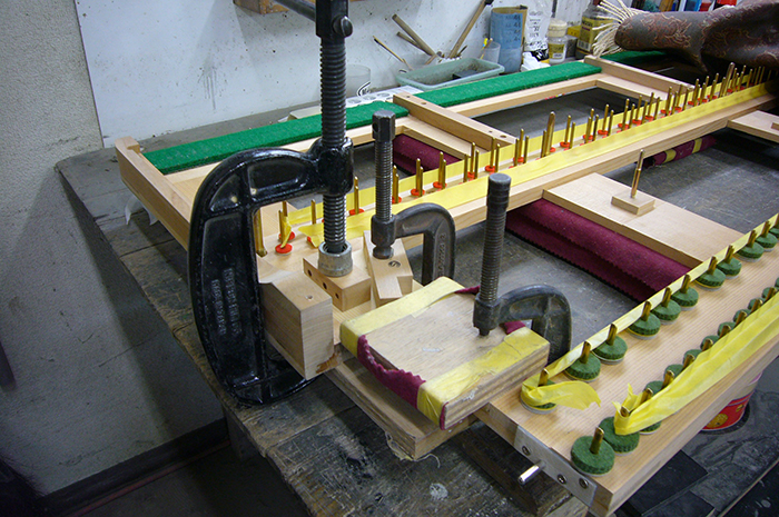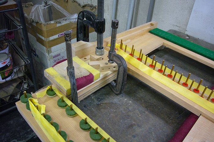 外装を塗装に出すと同時期より、今回最も深刻なダメージを受けた 鍵盤おさ亀裂破損修理を開始しました。