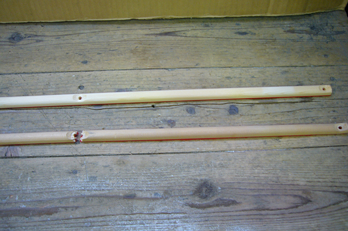 一本は新品が入っております。塗装した物と新品とで、色目などに微妙な差が無いかをチェックして、後日キャスターを取り付けます。